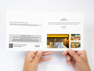 Ce bon cadeau comprend : une nuit en chambre Double Premium avec brunch pour 2 personnes (service de 12h à 14h30) le jour de l'arrivée, chambre disponible à partir de midi et petit-déjeuner inclus le lundi matin.