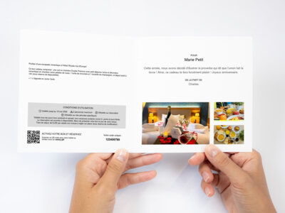 Ce bon cadeau comprend : une nuit en chambre Double Premium avec petit-déjeuner inclus et décoration romantique en chambre (avec pétales de roses, 1 boîte de chocolats et 1 bouteille de champagne), et départ tardif à 14h (sous réserve de disponibilité).